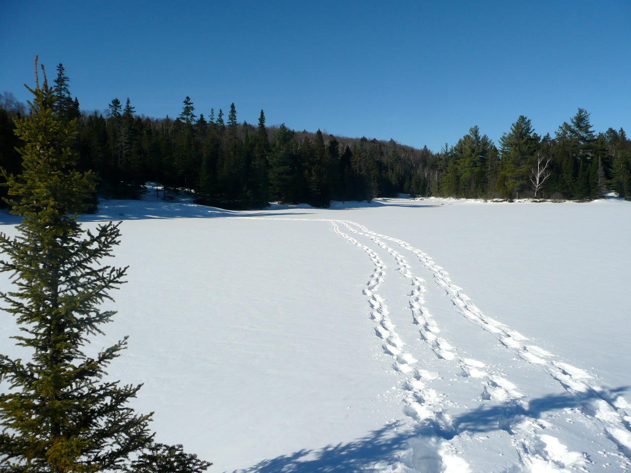 We took our time this morning. Waking up slowly as the sun lifted higher into the sky we realized we had yet another gorgeous blue day on our hands. We ate another meal of oatmeal and slowly got our camp packed an cleaned up. Instead of following the blue loop back to the parking lot we decided to cross the lake and take the portage to the track & trail cross-country loop, and connect with the highland trail farther north –giving ourselves not only an easier hike, but a change of scenery from our entry route. I’m all for crossing large territory when backpacking, but it seems that winter camping is much more of a base camp style, providing you the ease to take day hikes and come back to a prepared camp. After a healthy 2 hours we arrived back at the car with big smiles and sweaty backs.
