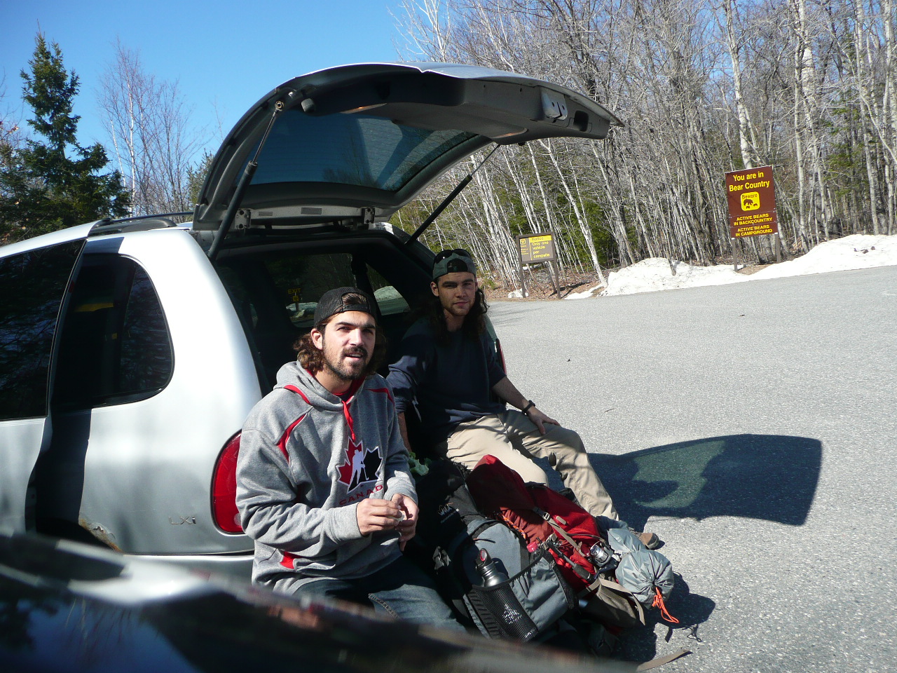 We scrummaged through the pantry and took anything that could be deemed camp worth, packed the fillet knife in anticipation for our big catch, loaded up all my camp gear and hit the road toward Killarney. We pulled in at 3:00 (half hour before the park closed), picked a spot that would be near decent fishing spots and that would allow us a permit, found out there was no where for us to pick up more kerosene tanks, realized we’d forgot the map and that John only had a pair of Welly’s from Wal-Mart to hike it. How else would you start a trip?