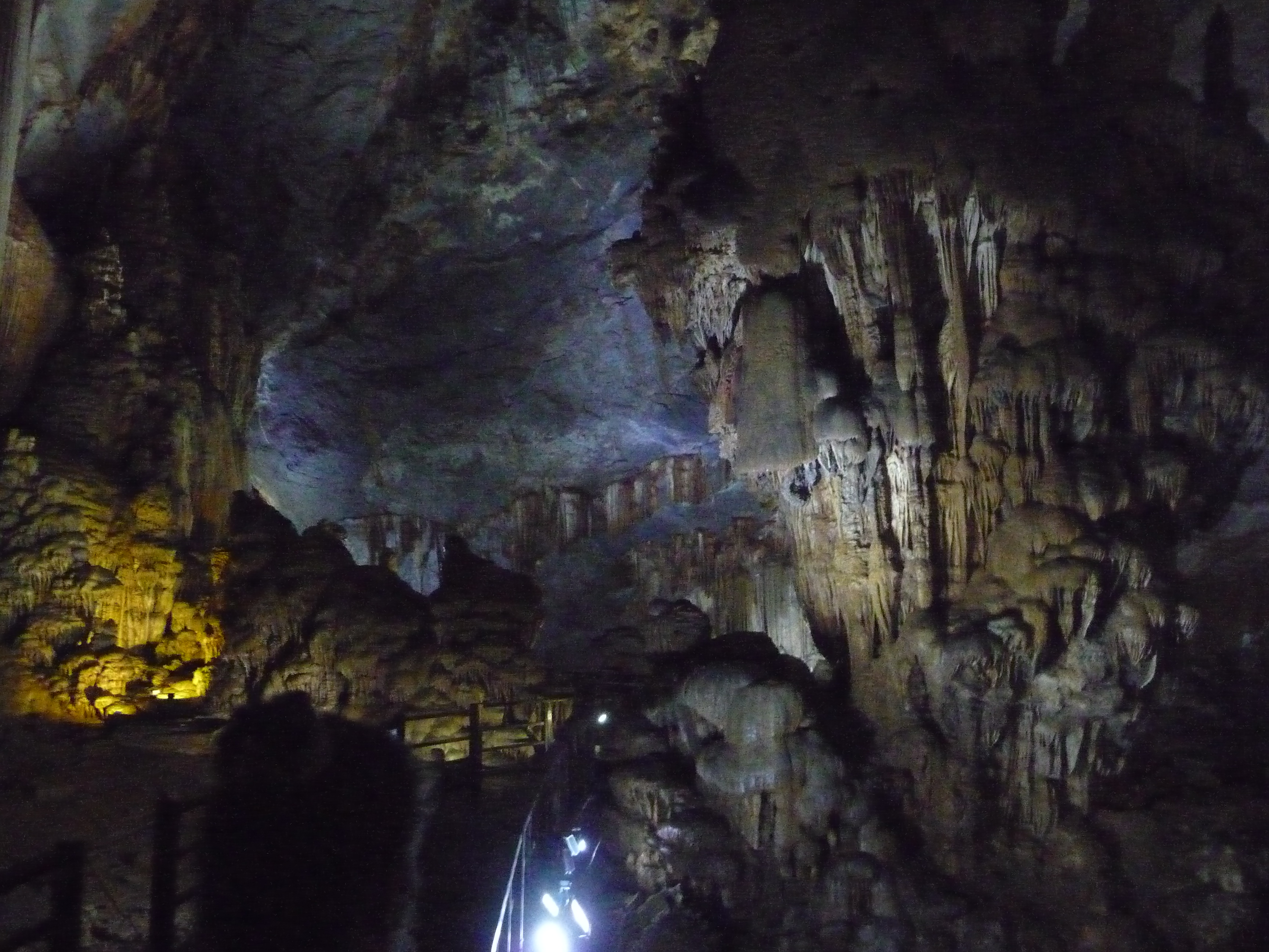 If you take the loop starting from Phong Na, after a solid 20km ride you’ll come upon the first and perhaps most illustrious cave you’ll likely have ever seen, Paradise Cave. This remarkable cave system has a total length that extends for 31km. Entrance to the cave is 120,000d/person ($6), which affords you access into the first kilometer of the cave. For a much larger fee you can hire a guide to trek 8km into the system with a headlamp. But for me, the first kilometer is quite enough. As soon as you step through the narrow opening to the cave you are awestruck by sheer size and the sprawling wooden staircase that leads into the belly of this beast. It’s truly breathtaking – get here early, or head out on a rainy day to avoid the crowds and experience the true ominous feeling this cave can perpetuate – there’s nothing quite like walking through this massive underground space when it’s quiet and dark.