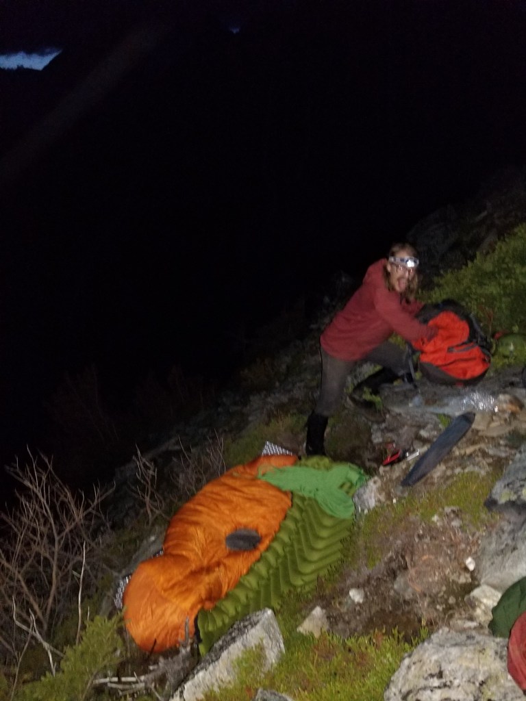 Tristan and I began our approach from the pullout just west of the Tractor Snow Shed. We decided to take off after work, leaving Revy around 6pm. From our vehicle to bivy spot took us about 4-hours since we’d gotten a little confused and spent a good chunk of time searching around for something suitable. In the end, around 10:30pm we just decided to use our axe’s to dig in a small flat spot on the scree slope near the beginning of the climbing.