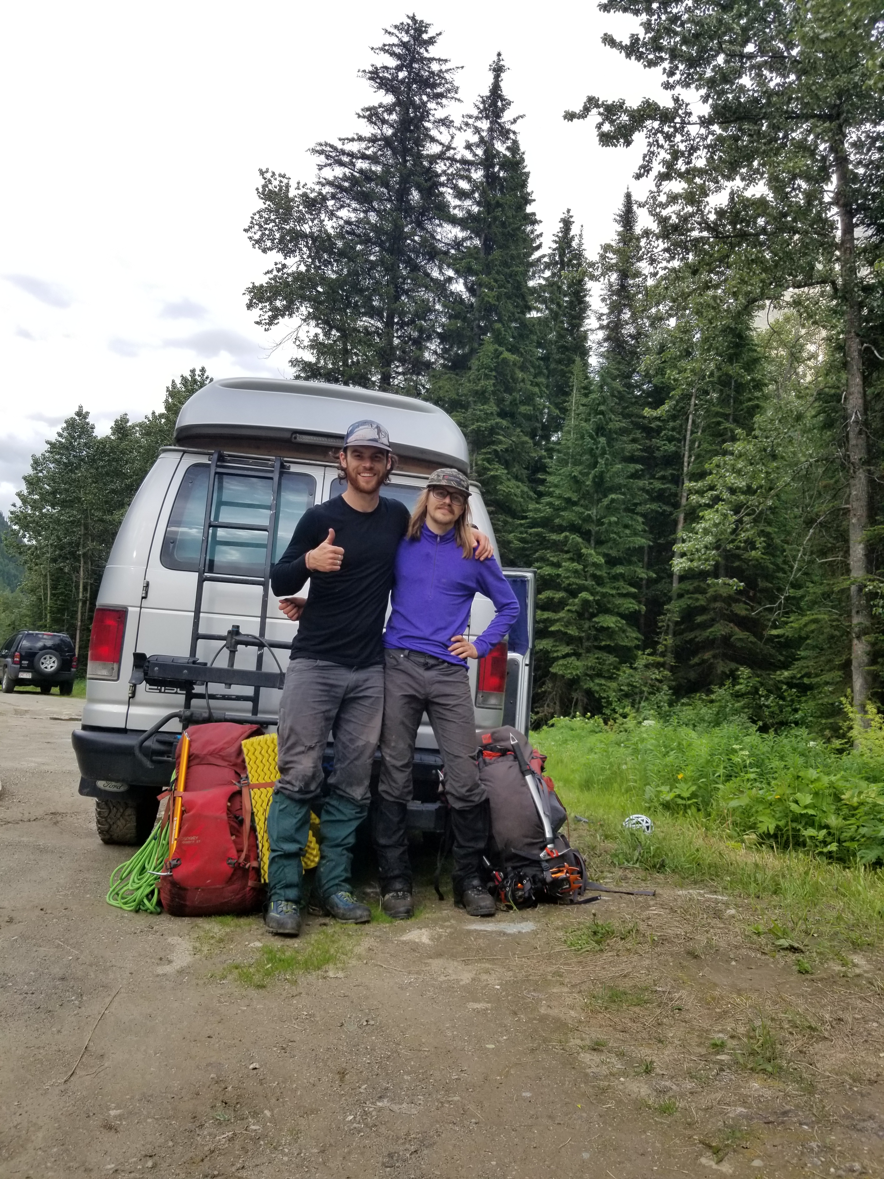 Back down at our Bivy site for 3:45pm we packed our larger rucksacks and planned to bushwack through the dense alder on the way down (thus avoiding the obvious rockfall hazard). However, once we realized how much slower it was vs. a sporting boot ski… we opted to take the boot ski down the Herdman. Some slips, trips, and a few butt slides later we again crossed the Illicilewaet river and were back to the van for 4:00pm – Roughly a 14-hour day from the Bivouac at the base of the route -> true summit -> Car. High-fives were abound and the thought of a large pizza from the Village Idiot in Revelstoke had us high-tailing out of the pullout spot and ripping the 70km west to Revy.