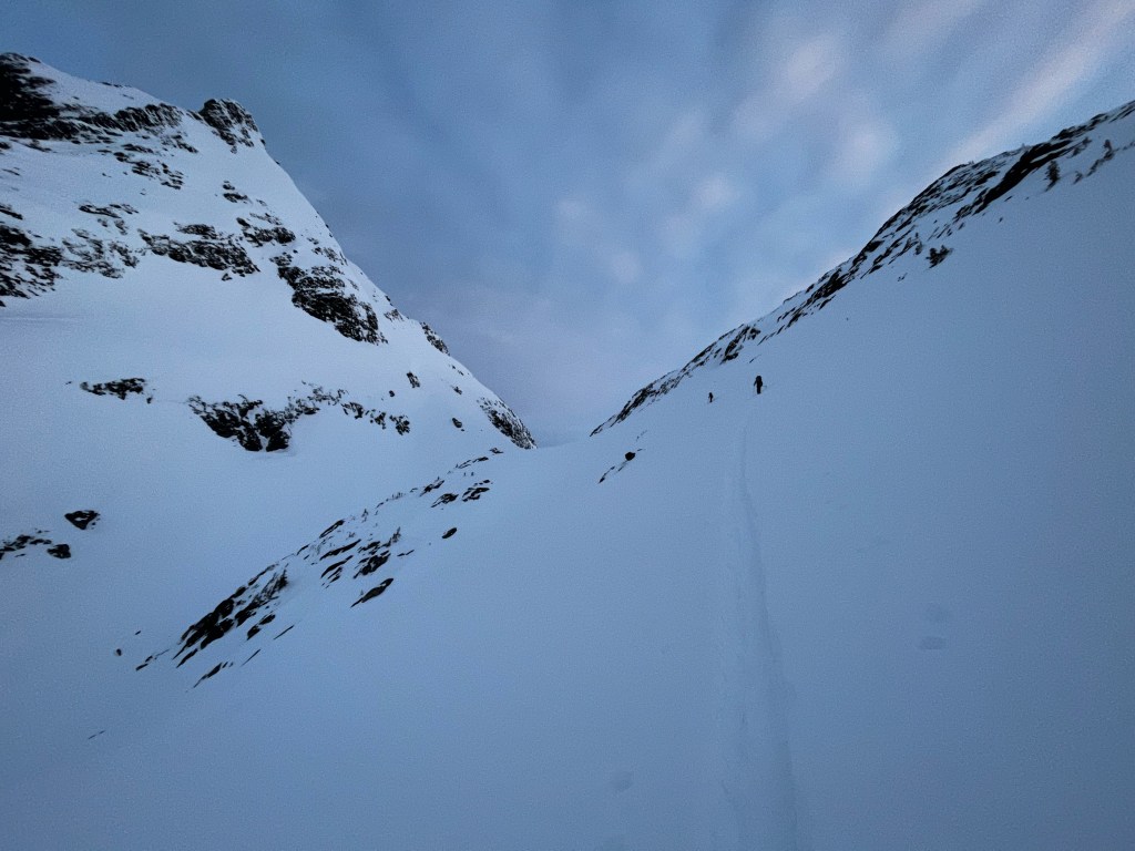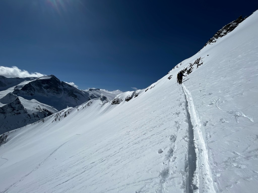 Day Two. Learning. Waking up to the alarm, quickly rising from the womb-like comfort of your down sleeping bag and setting forth the motions of coffee, food, pack, and go. You may feel efficient, but this process takes a solid hour. Day two has an itchiness to it. You’re learning your systems for packing gear, the order your partners work, do I go food in the middle, or closer to the top? You’re slightly bothered by your sticky heel riser, there’s a sore spot on your left heel, “Are my skins gliding well?”, you’re focused on what lies ahead.